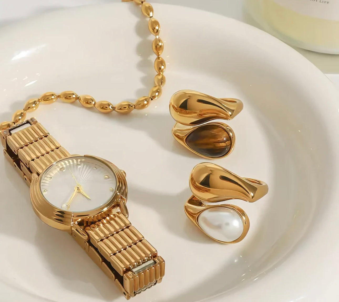All of our pieces are waterproof, hypoallergenic, and coated with premium 14K / 18K gold plating.